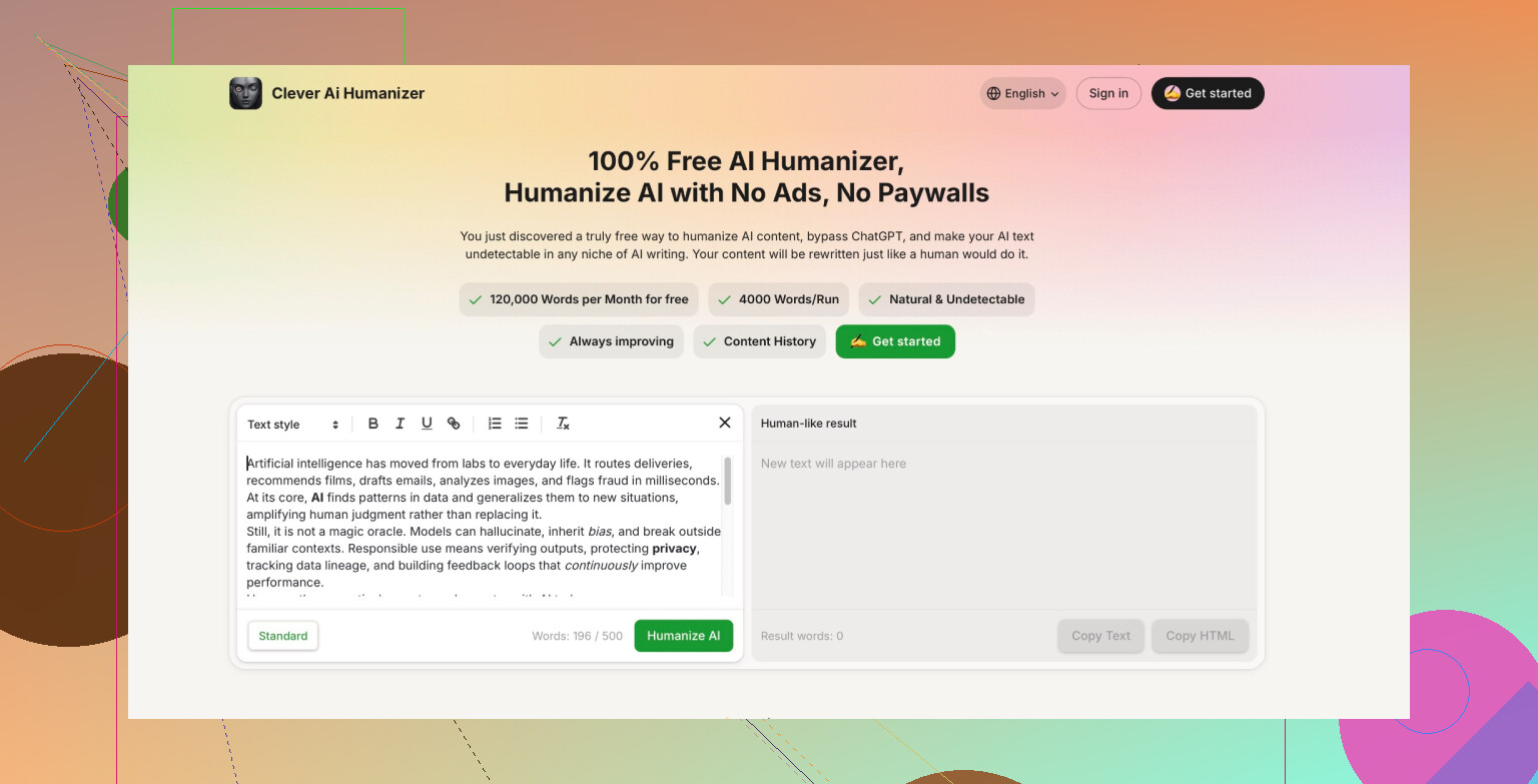So yeah, if you want free, reliable-ish, and easy, Clever AI Humanizer’s solid and what I keep going back to (even if sometimes the result is a bit too… casual, for lack of a better word). If you’re desperate, you can brute-force with paraphrasers one paragraph at a time, just don’t expect literary magic. Anyway, if all else fails — just casually mistype “the” as “teh” a couple times and you’ll fool at least half the internet.