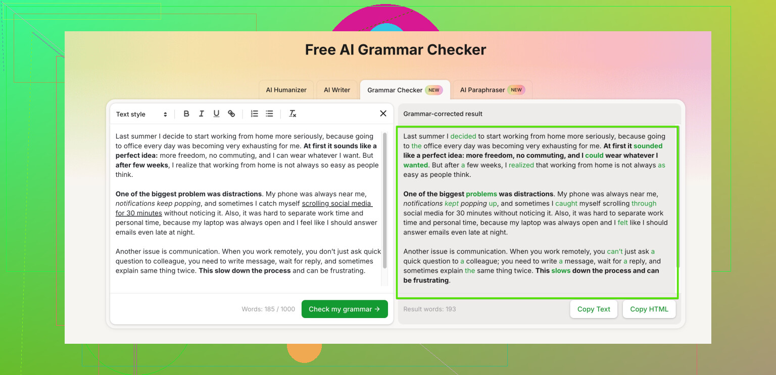 If you want an online helper that focuses on both grammar and natural tone, try this advanced grammar and style checker for clear, natural writing. It works well alongside human feedback rather than replacing it.