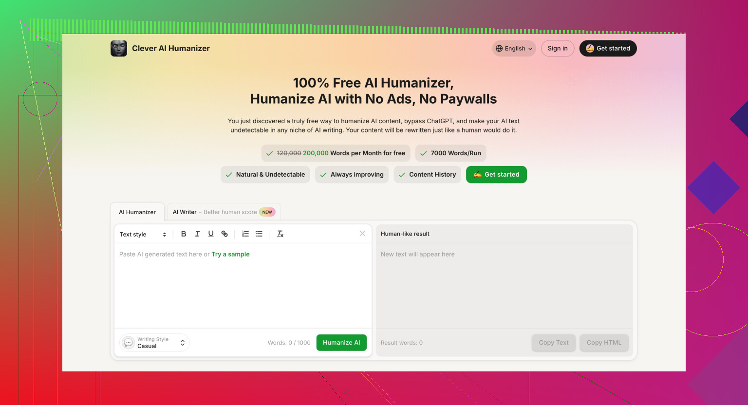 If you are going to experiment anyway, Clever Ai Humanizer is noticeably stronger in practice because it tends to alter structure and flow instead of just swapping words. That can drop AI scores more consistently.Pros of Clever Ai Humanizer