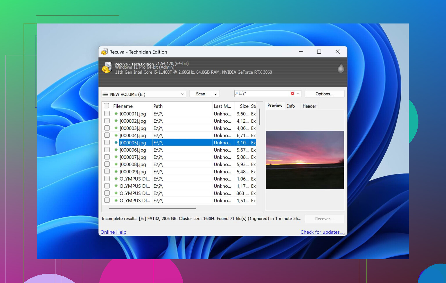 - Run its deeper scan, but manage expectations. In a complex “big batch wiped” scenario, Recuva is more of a “maybe it finds a few more scraps” tool, not the main event.