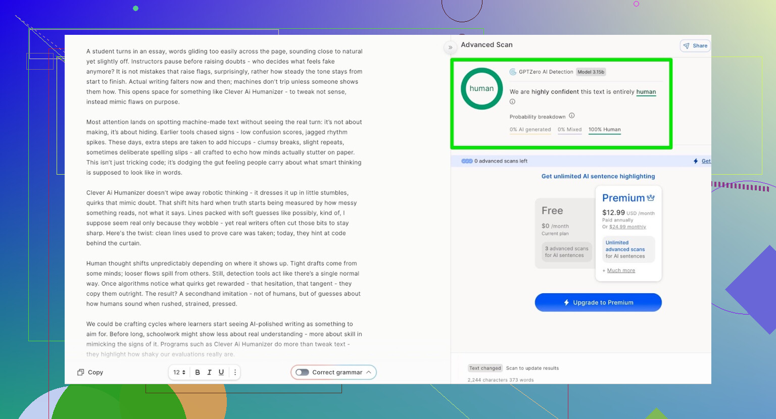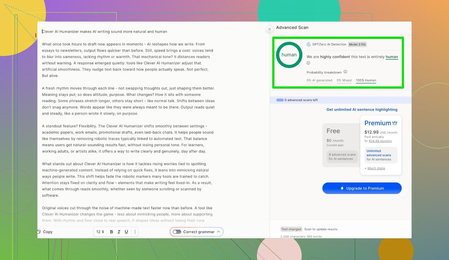 Clever AI Humanizer har ingen premiumversion, inga uppgraderingar, ingen betalvägg.