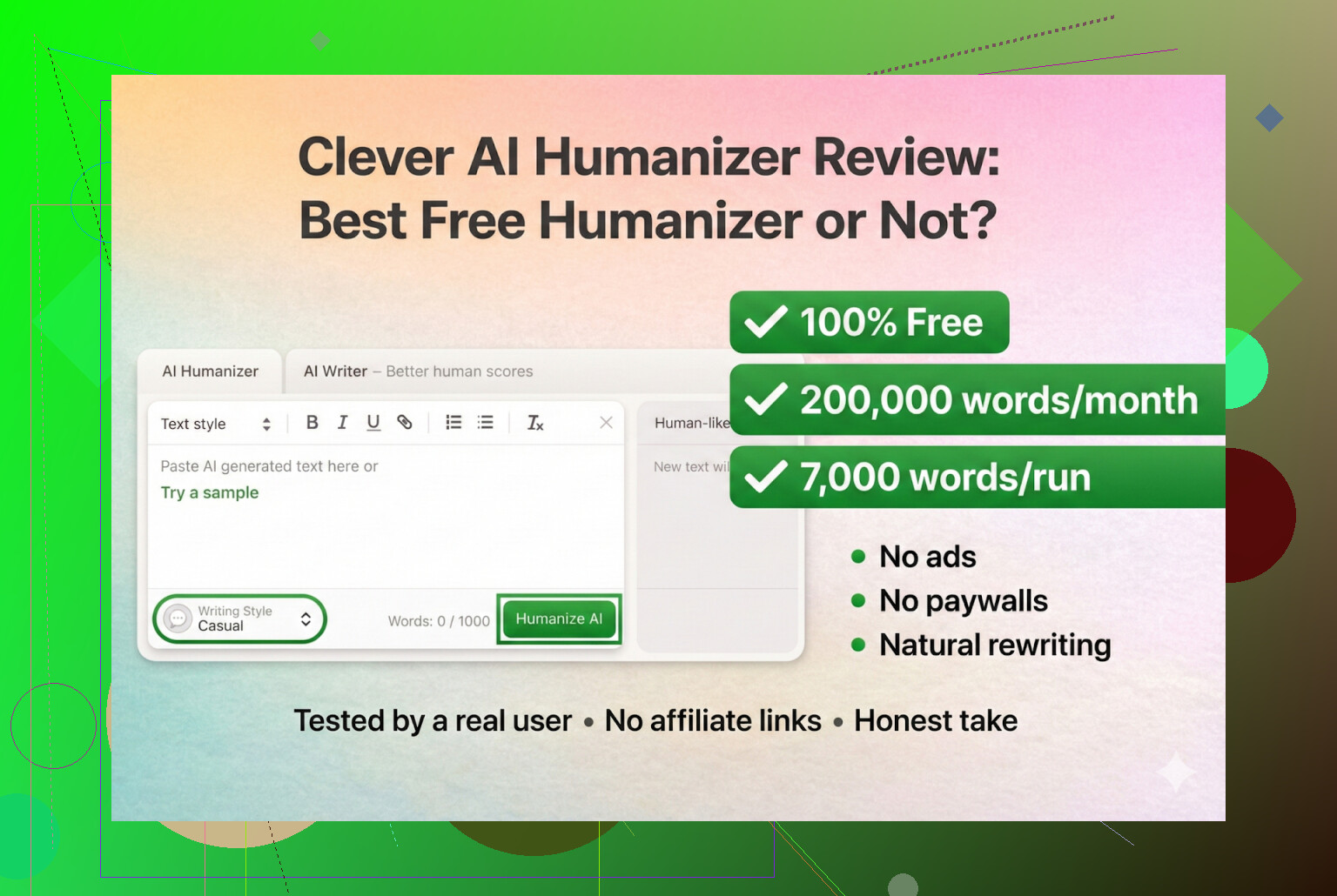 Jag har haft en ganska blandad men mestadels positiv upplevelse med Clever AI Humanizer, så jag tänker bara lägga fram det utan hype.