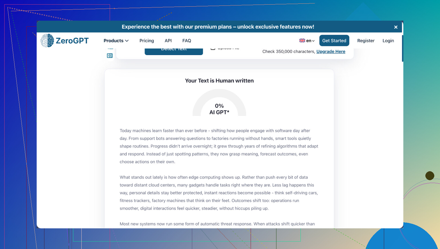 On GPTZero/ZeroGPT, it won’t save you 100% of the time, but it does noticeably better than the pack.