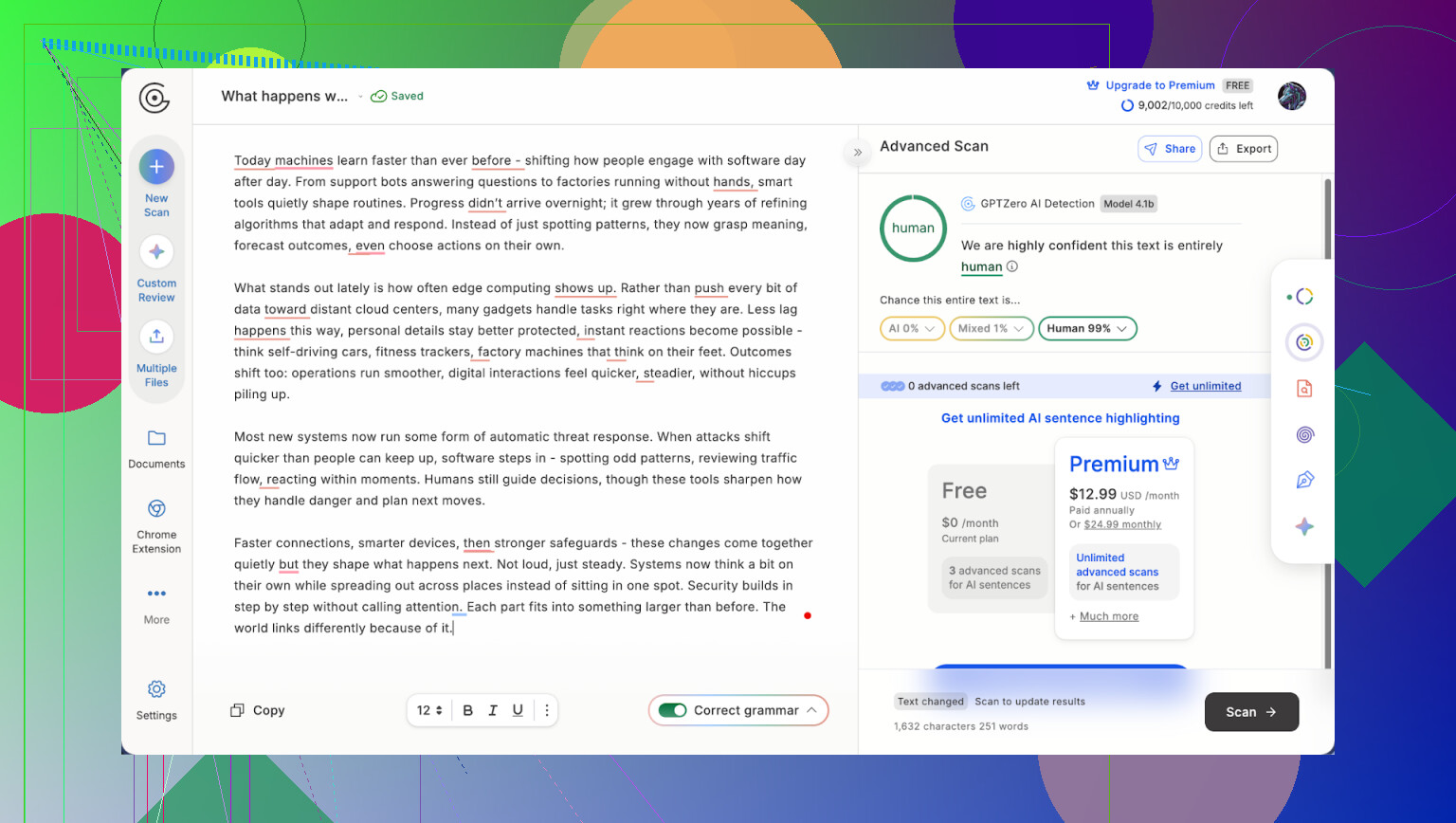 Where I disagree a bit with @mikeappsreviewer is detection scoring. I would call it 6–7 out of 10, not a clean 7. Longer technical text still gets flagged often. For blog posts, email, school work under 2k words, it performs fine.